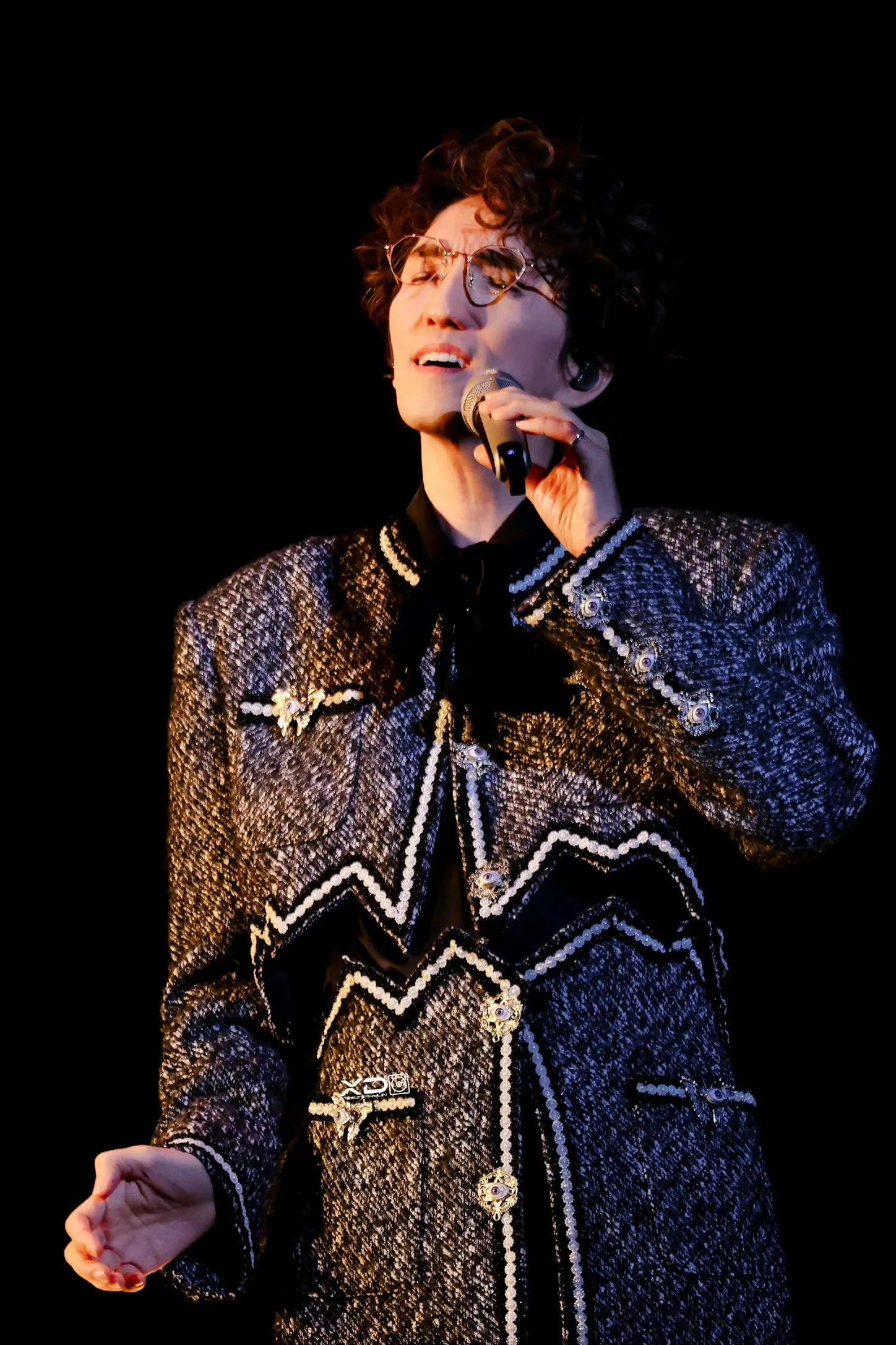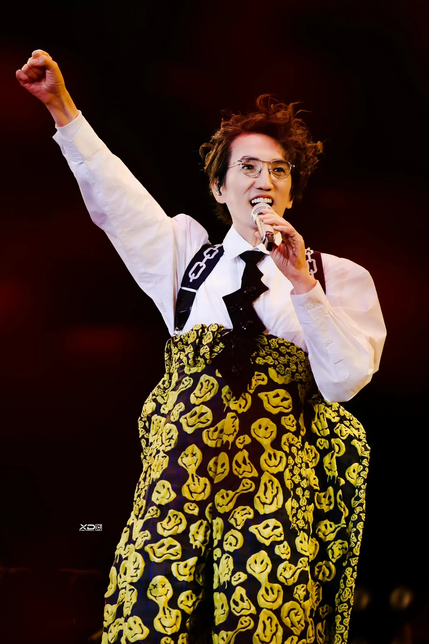 但是,這個頭髮實在是 冏…秋意濃那一Part的衣服是我這次巡演最無法接受的,細節繁複但實在太像女裝(這件真的是男裝),上衣分成兩半,配上捲捲頭,有夠WTF,還好只出現兩次(?),造型師怎麼選衣服的? 倒數時的衣服很妙,就是個超級大布袋,但上半身還蠻好看的;閃電領帶點綴小蜘蛛,配合褲子的顏色,靈感來自皮卡丘嗎? 哈哈哈哈哈 XD